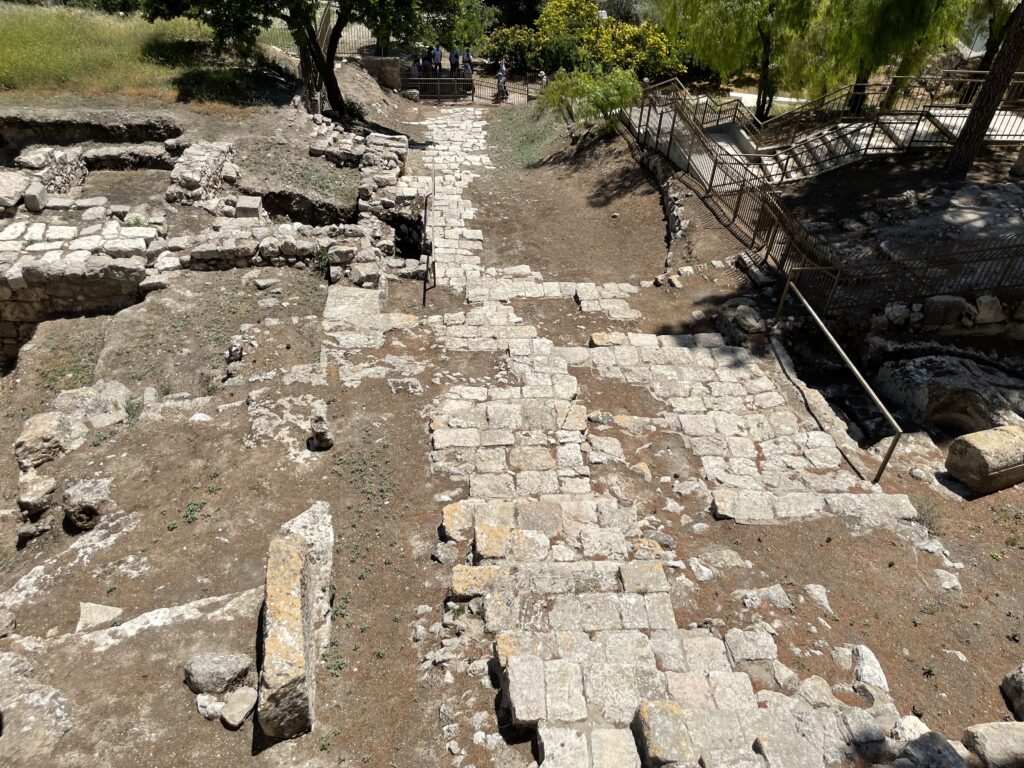 Underneath this church are some ruins that many believe is the house of the high priest Caiaphas. See the whipping areas and the pit where Jesus may have been held. The passages below describe the trial at Caiaphas house before they took Jesus’ to Pilate. This trial was held at night and then in the morning they made a final decision, since they could not condemn Jesus to death before day break, according to their laws. Also, each Gospel gives the account of Peter’s denial:
